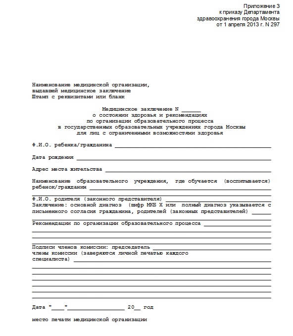 | Назначение | Медицинское заключение о необходимости перевода учащегося на домашнее обучение |