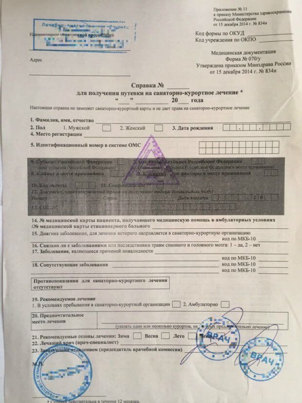 СПРАВКА 070/У ДЛЯ ПОЛУЧЕНИЯ ПУТЕВКИ